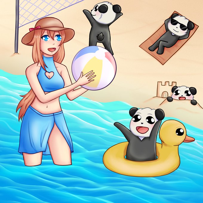 My entry for the summer themed Bahroo art contest! It was a lot of fun to draw your cute characters. 💕🐼 @AdmiralBahroo