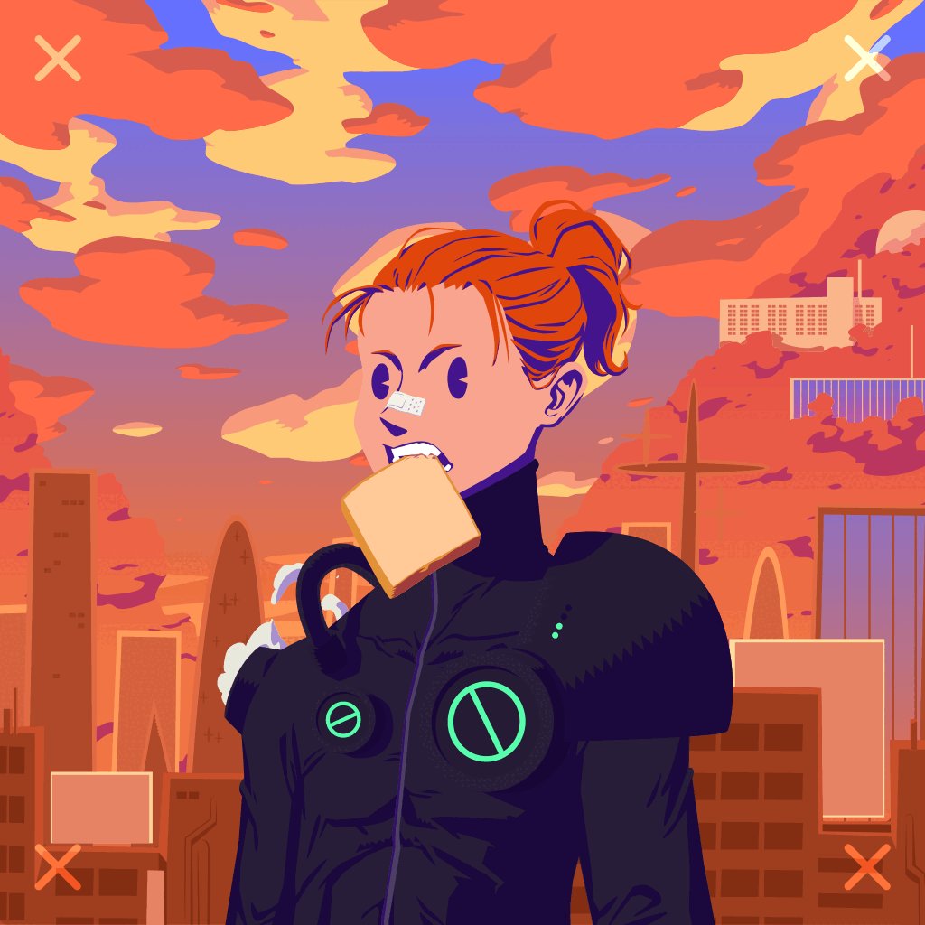 Agent 47 is a first-year cyberpunk agent who finished at the top of her academy. She was recently paired with Agent 2 who is only outranked by one agent. Agent 47 hopes to one day get a desk assignment where she will never miss a lunch again.