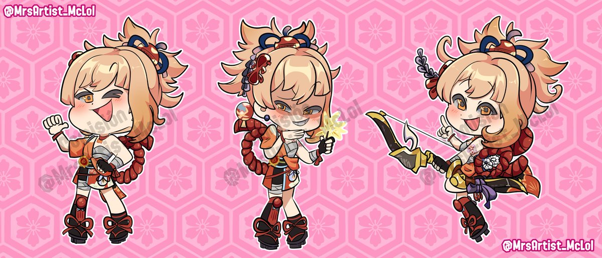 Dejo por aquí los chibis que hice <3 Todo un gustazo haber colaborado en esto #Genshinlmpact #Yoimiya