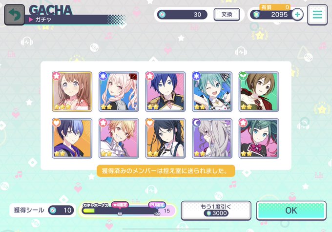 あまりにもびっくりしたからこっちでもあげちゃう 限定のガチャシール欲しさに回したらまさかの星4を2枚抜きした……めっちゃびっくりした……(゚ロ゚)