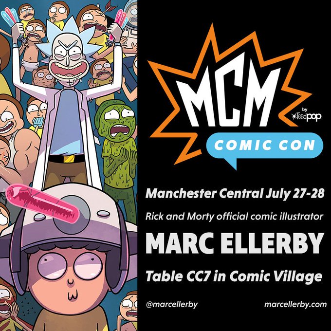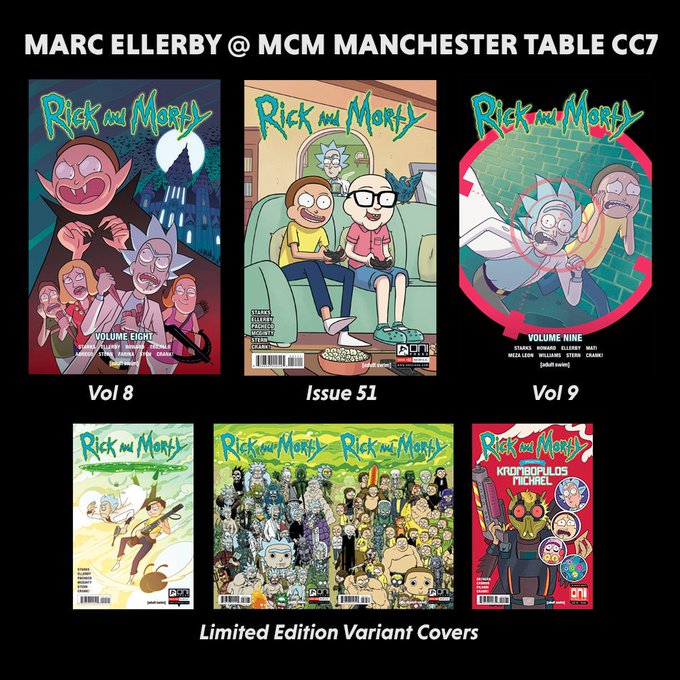 I will be at Manchester MCM Comic Con this weekend! Table CC7 in the Comic Village. I'll be signing and sketching in books both days. Here's a look of what I'll have for sale including the BRAND NEW Volume 9 of Rick and Morty. #mcmmanchester #rickandmorty