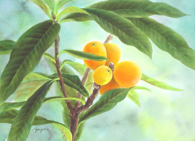 透明水彩で描いたびわです。 #水彩画