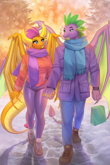 Commission for MegaMcHughX Looks like this couple have great winter date <3 Happy holidays! 💖 #mlp #spike #smolder #dragon