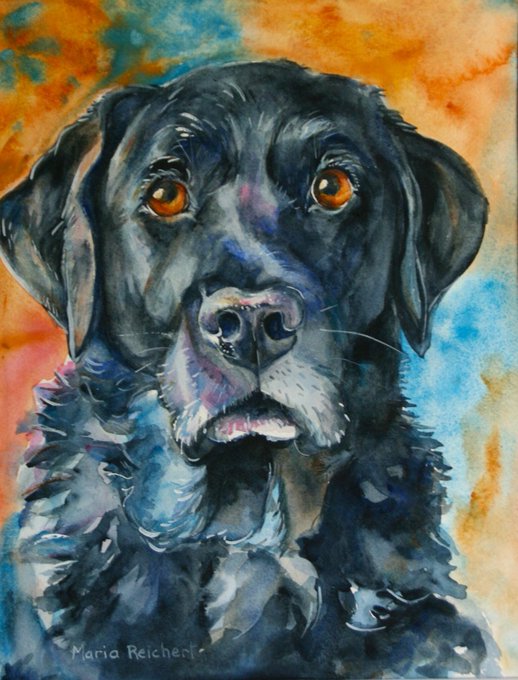 A painting of Bosco. 11 by 14 watercolor on paper, Commissioned for a Christmas Surprise. #canineart #blacklab