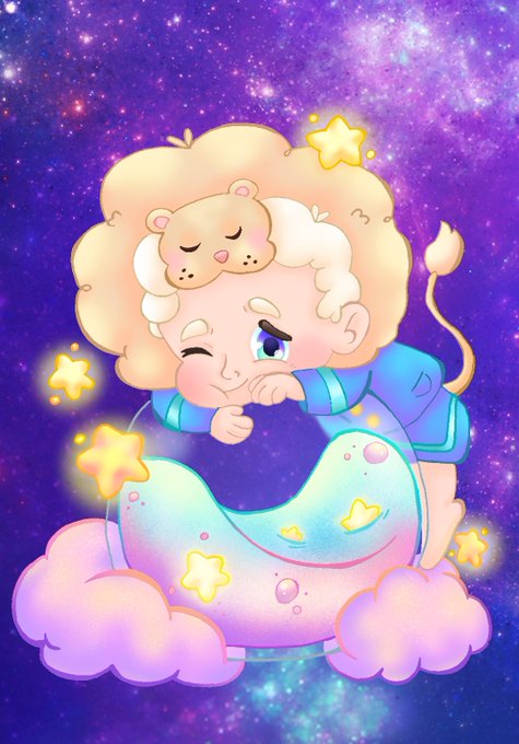 I commissioned moonmystery5 (on Instagram) for a Leo zodiac Aziraphale because I love their cute style and colored the commissioned lineart💕💫🦁