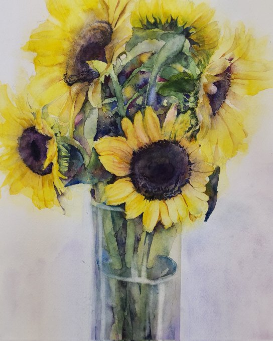 明るいところで撮影した水彩画。先生に見せたら褒められましたので、これにて終了。紙も限界だったので、今日良い紙買ってまた花描こうと思います。前の鬱ツイートは削除しました。メンタル的にも不安定でした😅 #水彩画 #透明水彩画 #watercolor #watercolorpainting