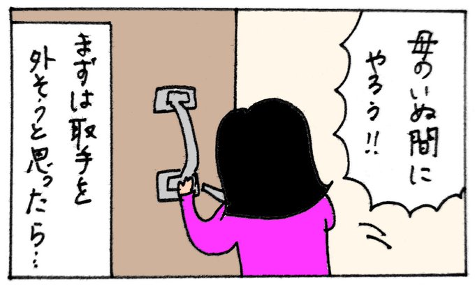 実家のドアノブ塗装DIY!成功したような、失敗したような…🤭 その2 #DIY #DIY女子 #ドアノブ #塗装 #4コマ漫画 #コミックエッセイ