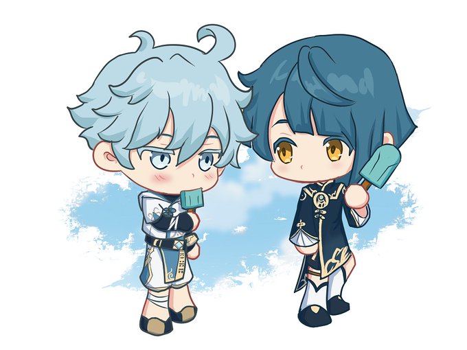Featuring Chibi Xinqiu and Chongyun chilling with some popsicle
