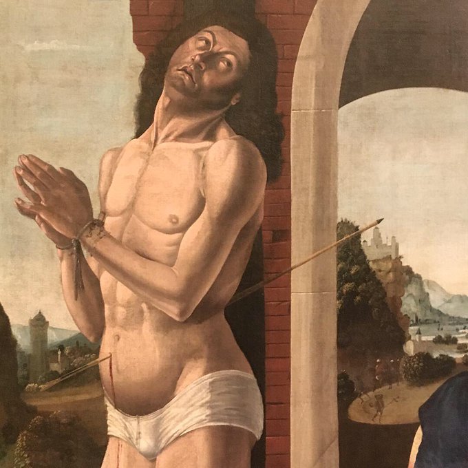 I swung by the Palazzo Barberini (@BarberiniCorsin) today and spent some time thinking about these 2 #SaintSebastian paintings. The 1st, Antonello de Saliba, 1520, the 2nd, Francisco Pagano, 1472-1476. So different, yet the head tilt & mouth are nearly identical. #ITweetMuseums