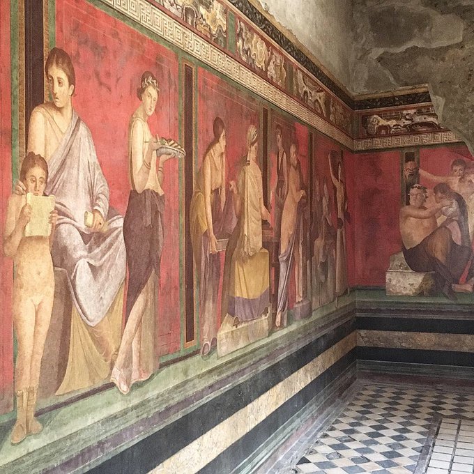 One of the highlights of exploring #Pompeii was getting to see the fascinating #VillaOfMysteries. It's outside the main area & much less frequented by tourists, which made it even more exciting to admire. There is even some ancient graffiti being preserved there. #ITweetMuseums