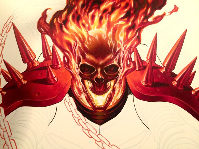 On the drawing board-Working on something a bit out of my comfort zone. Having a blast. #GhostRider #Cosmic #Marvel #Comics #MarkBrooks #Thanos
