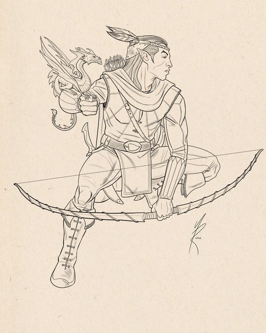 Inks and colors of a Wood Elf ranger and his pseudodragon as part of a larger #DnD party commission.