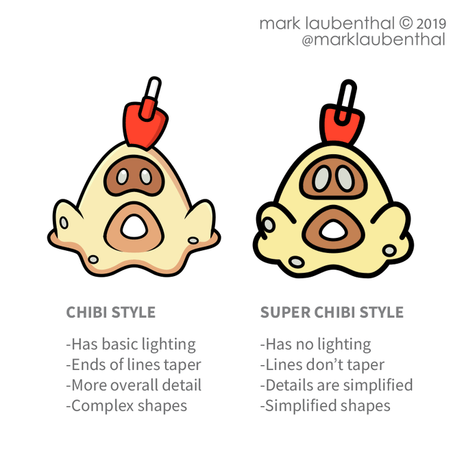 I made a breakdown pic explaining the differences between my two main styles, what I call 'Chibi style' and 'Super Chibi style', featuring my take on Sandygast