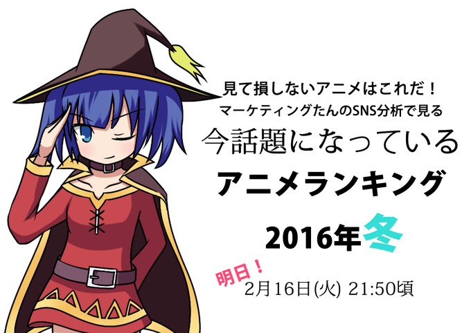 今夜はマケテのちょっとした小話として「2016年冬SNSで一番話題になっているアニメタイトルはなにか」について解説していきますよ!