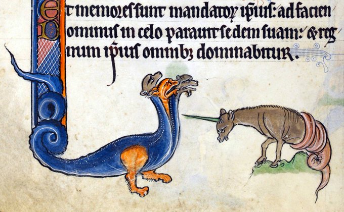 Whe you realize that some medieval miniature painter of the 13th century accidentally made a preview life reconstruction of the bizarre "#unicorn" which was drawn in 1749 by Gottfried Wilhelm Leibniz based on ice age mammal bones from the #Einhornhöhle (unicorn cave) of the Harz.