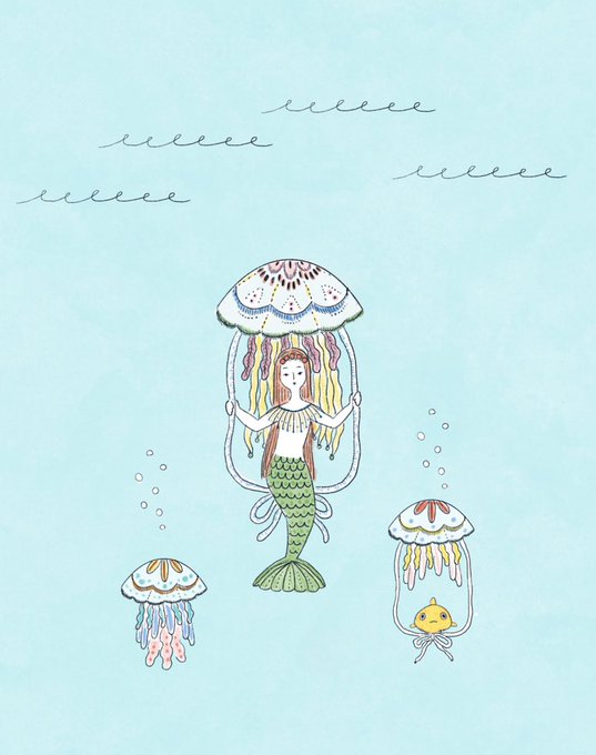 グッズ【クラゲのブランコに乗る人魚とダンゴウオ】こちらは刺繍ではないイラストです。TシャツもSALE中です。人魚好きとダンゴウオ好きに届くといいなと思ってます。