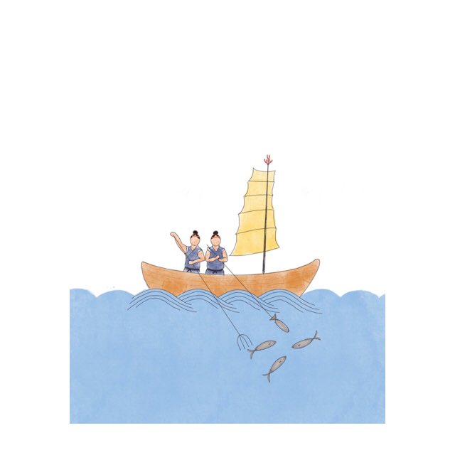 宮崎県に伝わる伝統漁を、船は沖縄の伝統的な船を参考にしました。