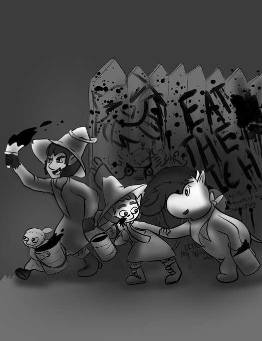 Moominktober/Inktober Day 25: Painting/Splat Snufkin brings Moomintroll on a spree #moominktober #inktober #inktober2021 #moomins #moominvalley #moomintroll #snufkin #snufmin #painting #splat #littlemy #joxter #chaos #eattherich #cheeky #joxterisagoodparent #paintingthetownred