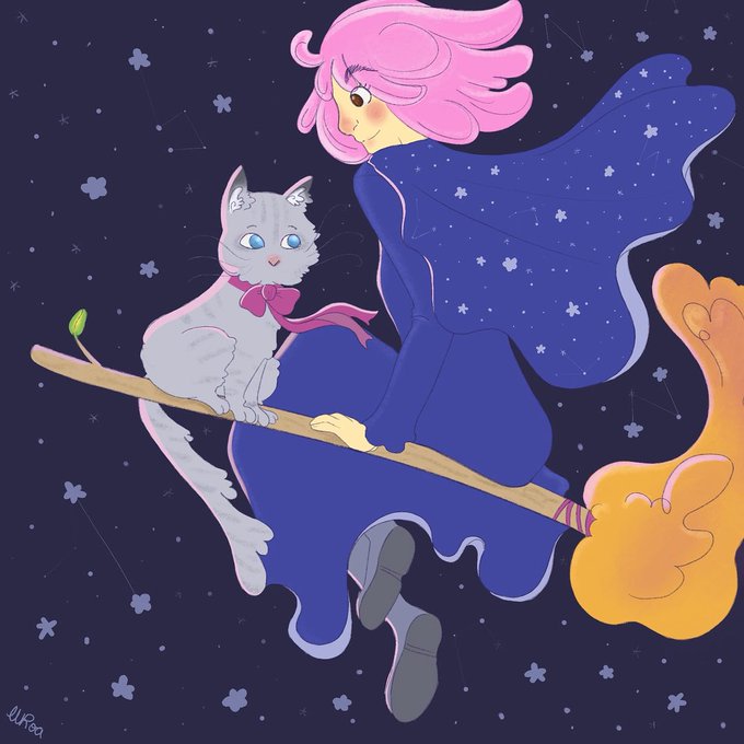 Los gatos son el perfecto copiloto para las brujas que adoran volar en escoba. Este dibujo va dedicado a mi sis @HikaruStark con todo mi ❤️ //#witch #witches #witchsona #drawitch #witchgust #bruja #brujas #childrensillustration @dibujando @Dibujnautas