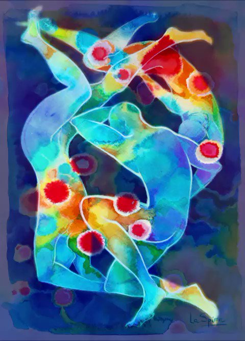 "Three beings in a chromatic stain" - Weightless series.