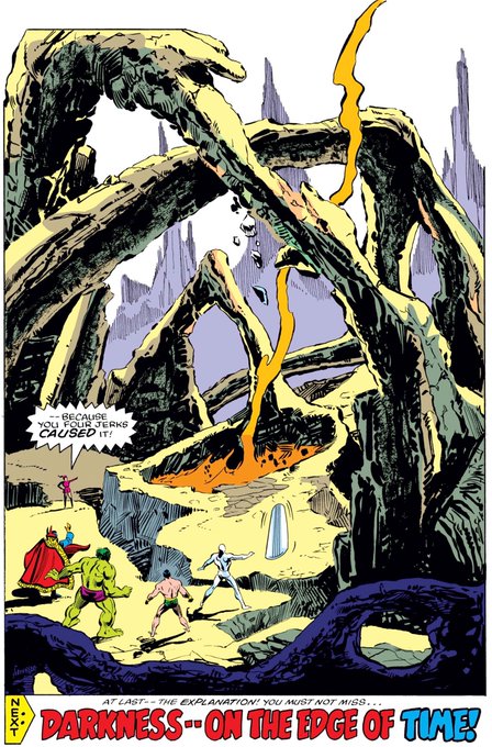 The Defenders and the Elf with a Gun arrive at their destination in time! “This is dear ol’ Mother Earth, fellas--some time in the mid twenty-fourth century! I hope you like what you see--because you four jerks CAUSED it!” #marvel #defenders