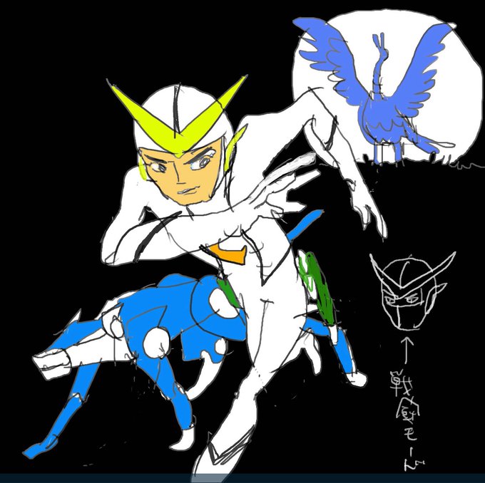 #答え合わせ ブイの字は眉間にかかるくらい低く、額の丸みに合わせてある。耳の形が犬ロボフレンダーと同じなの初めて気づいた。 この頃のタツノコのデザイン良すぎる