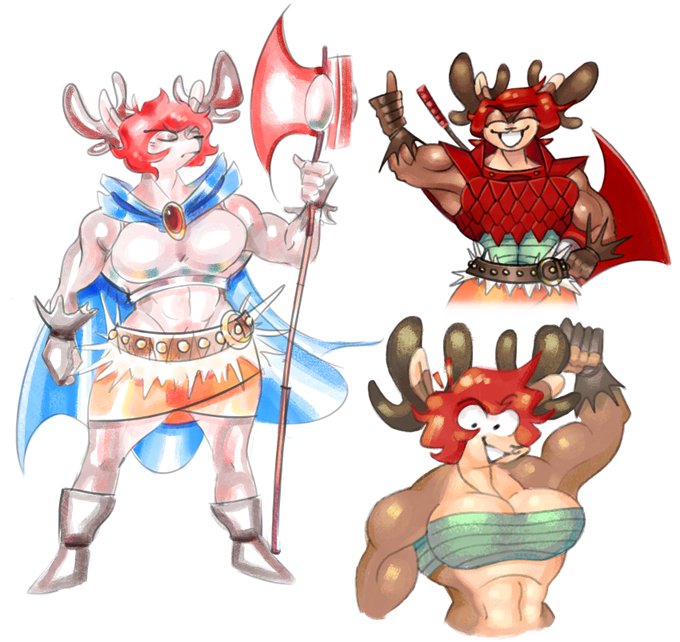 collection of art of my dear (rein)deer barbarian gal Cera from last year (she wants to show you her cool armor)