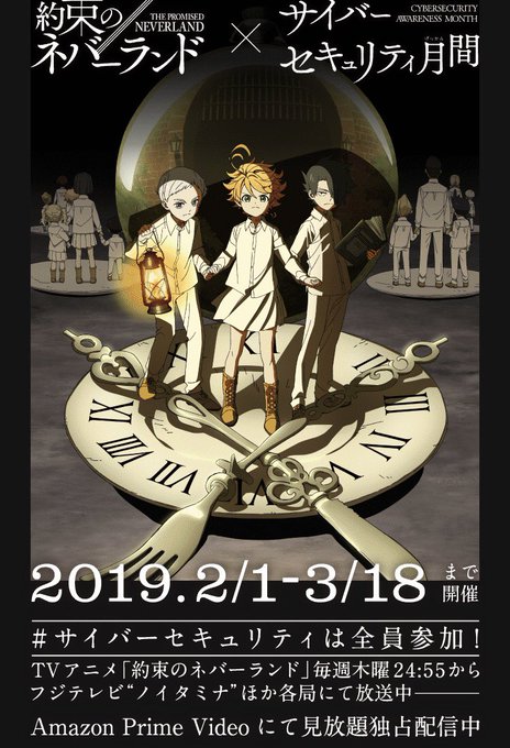 会社に着いたら約束のネバーランドのポスター貼ってあってビックリしたけど、サイバーセキュリティ月間のコラボだったw