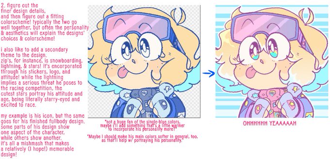 6. describe your character design process: okay ! i typically go with around 2-4 main concepts in a design. it's a little broad, obviously, but this is what I typically strive for in my oc designs!