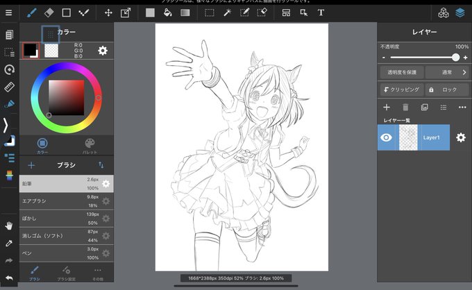 お絵描きタイム〜 ちょいペン入れとちょい色入れしたっ サイレンススズカに続きイイ感じに描けそうだ(๑•̀ •́)و✧ 明日も仕事だし今日はここまでにしよ〜