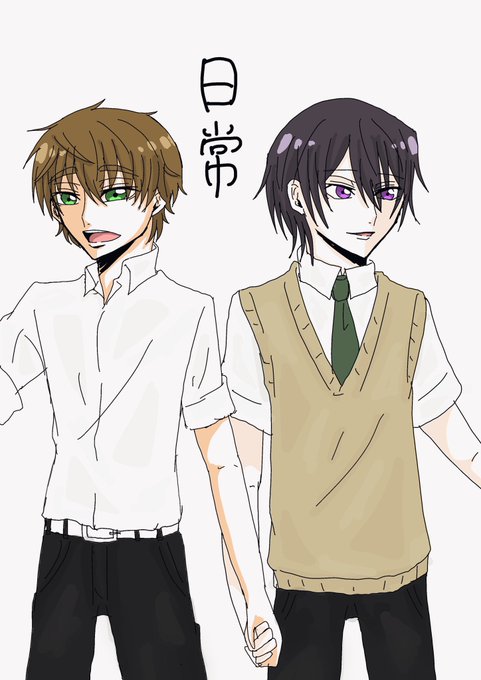 #スザルル版深夜の絵描き文字書き60分一本勝負 お題:日常 学園アイドル様の日常。現パロ。 ずっと手を繋いで普通に歩いているだろう!!! 20分遅刻しましたすいません!!!!