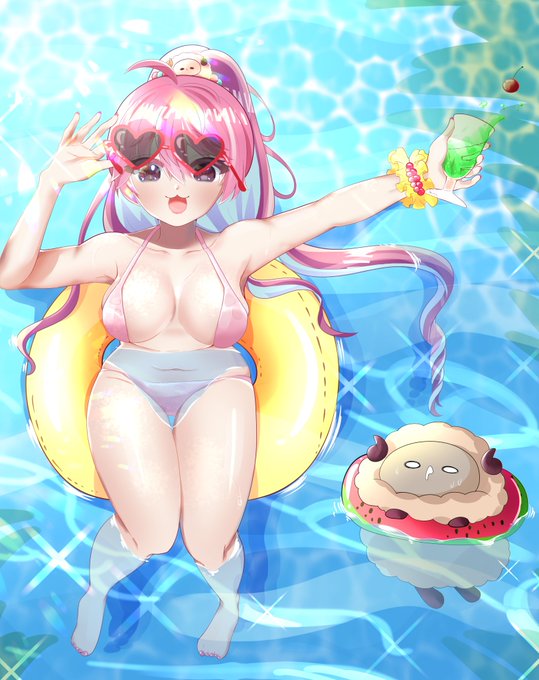 という事で、海でバカンスをするまとんちゃんを描きました!😆