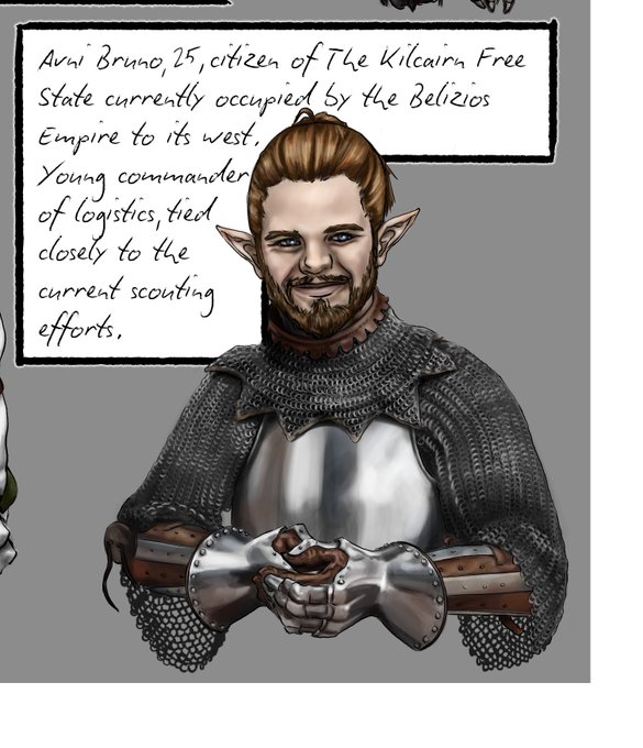 @AmaraJLynn @_CandaceHarper #LGBTQWriMo D10 here's some I've drawn or have #WIP of. Bruno, Eidon's brother figure/found family. Vincentianni, their current lover and future companion. Haranthiel,the knight who saved their life at 12 and became close guardian. Pujmit,their older cousin and political adviser.