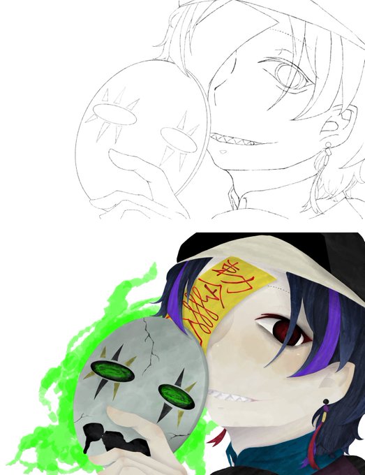 #皆さん線画と塗った後を見せてください 線画大抵ちゃんと描かないがち
