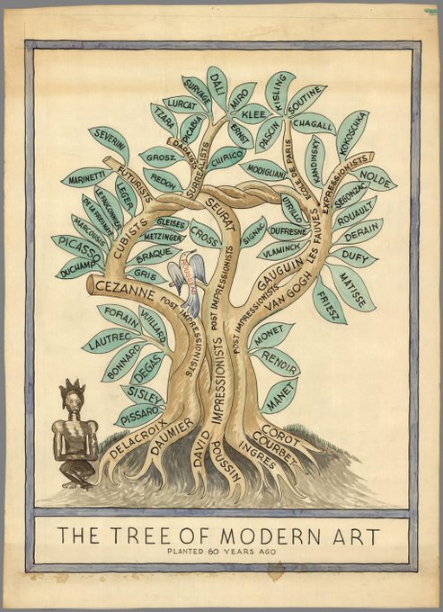 Miguel Covarrubias, The Tree of Modern Art, 1940. #modernism #modernart