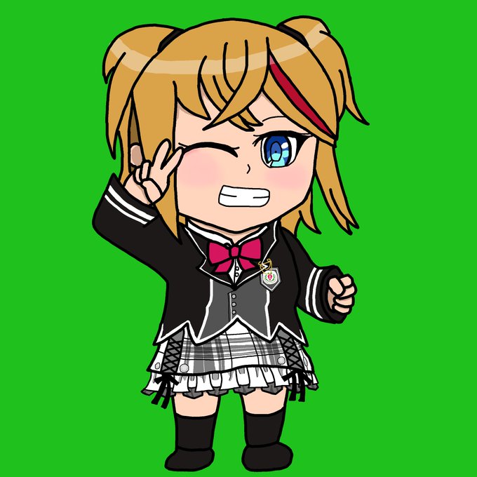 そして、デフォルメサイズの #夏川あき さん お誕生日おめでとうございます🎉 最初左手を上げてる方を描いてたけど、下に下げた方も描きました。 #私立いちご女学院