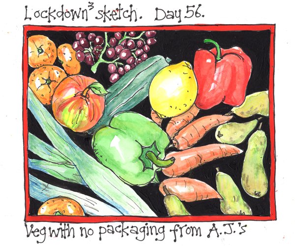 Today I celebrated by drawing a bag full of fresh fruit and veg from our local stall. No packaging either.