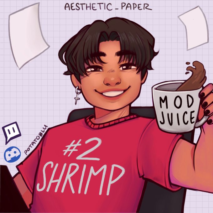 SHOUTOUT TO THE AMAZING ARTIST AND BEAN KNOWN AS @PotatoBlu_ They recently opened up limited commission slots so you know I had to get on it. Decided to have them draw @aesthetic_paper as a thanks for their hard work managing everything. You deserve it you coffee gremlin ☕️