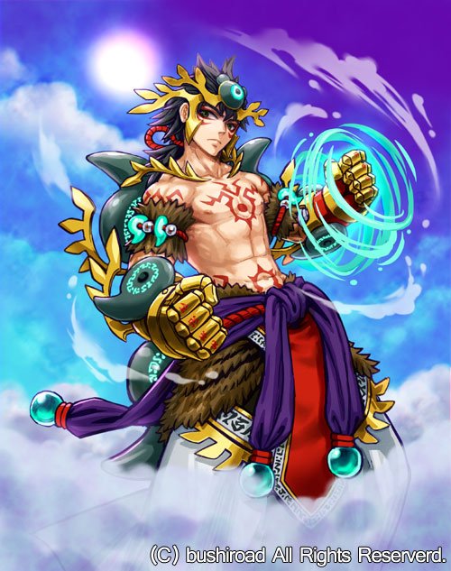 昨日1/13発売のカードファイト!!ヴァンガードGキャラクターブースター 第2弾「俺達!!!トリニティドラゴン」にて『神魂烈士クマノクスビ』『神魂烈士イクツヒコネ』ってのを描かせて頂いたよ。是非入手して、コイツまた半裸の男描いてる(ドン引き)って思ってね。あとなんか亀ちゃんも再録