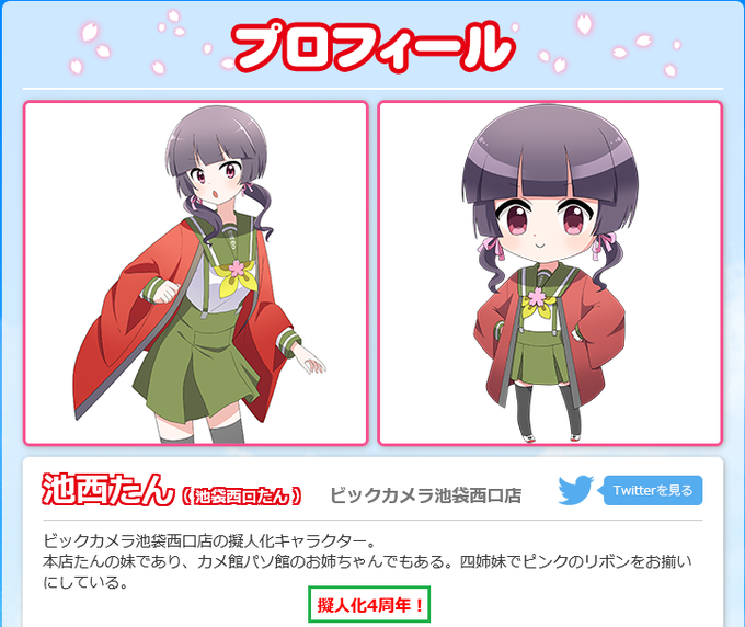 【ビッカメ娘 "池西たん"擬人化4周年】2021年05月09日は東京・再開発で綺麗になった池袋西口にて営業している"#ビックカメラ池袋西口店(@bicikenishi)"様の看板娘"#池西たん"の擬人化4周年記念日!姉の"#本店たん"よりしっかりしていそうw #ビックカメラ #ビッカメ娘 #5月9日は池西たん擬人化4周年