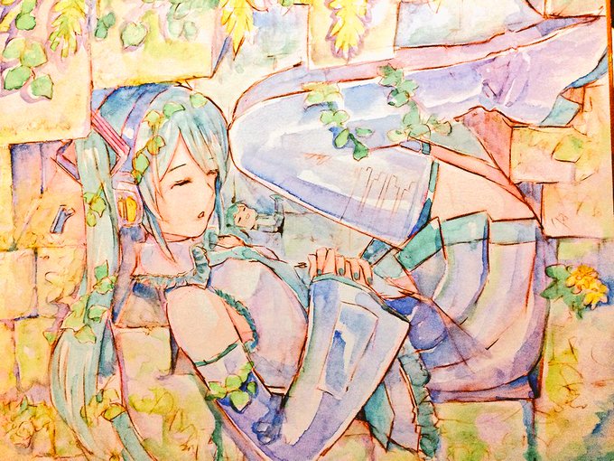 昨日描いた初音ミクさんのミクミク遺跡イラスト。 何か足りないなぁ〜と思ったんですよ!( ̄▽ ̄) 足して見た!