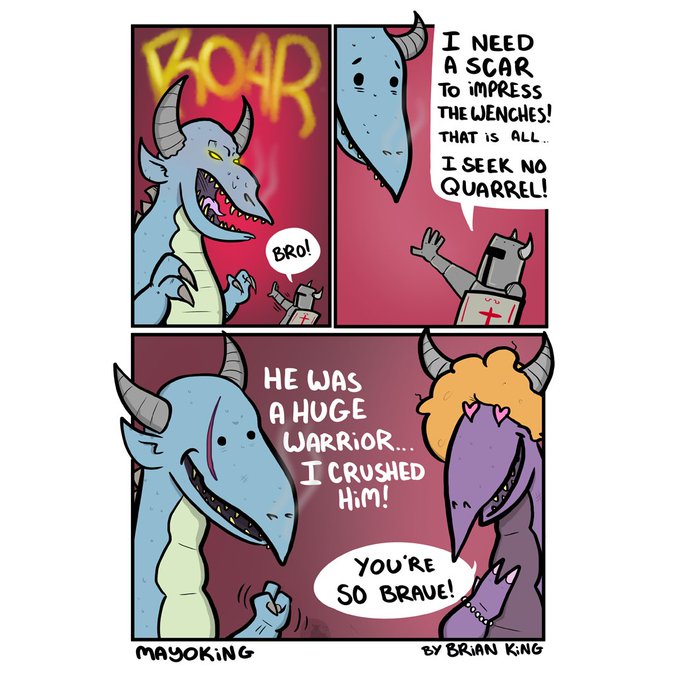 Hi! I am Brian King I make a new comic every weekday during my lunch break! Nice to share my comic with you! I wish I had did #hourlycomicday but I work on Mondays! I make funny comics, wholesome comics, mental health strips, as well as some dirty comics. #ArtistOnTwitter