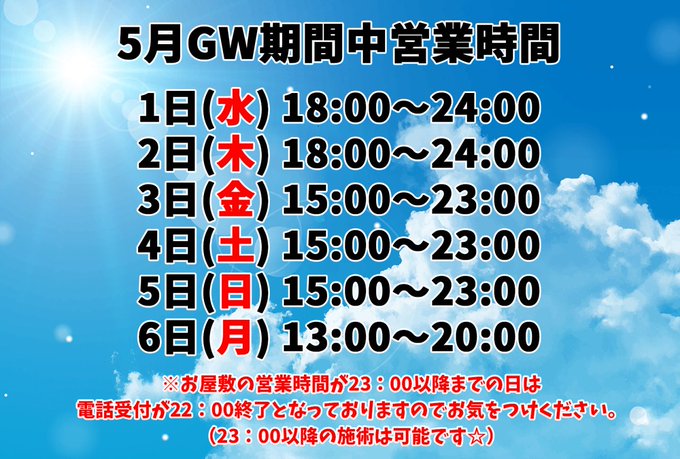 GW最後の日にリフレで癒されにご帰宅なさいませんか?