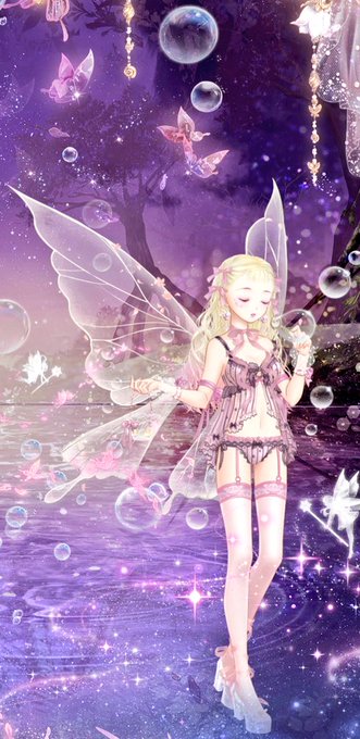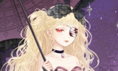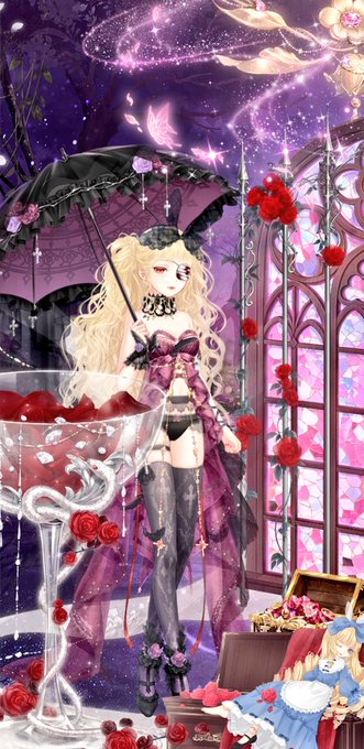 メイクは皆大好き(?)「空虚な双眸」ちゃんですよ!そこに可愛らしい金髪クルクルの「夜月の蝶」を合わせるのが何とも…!