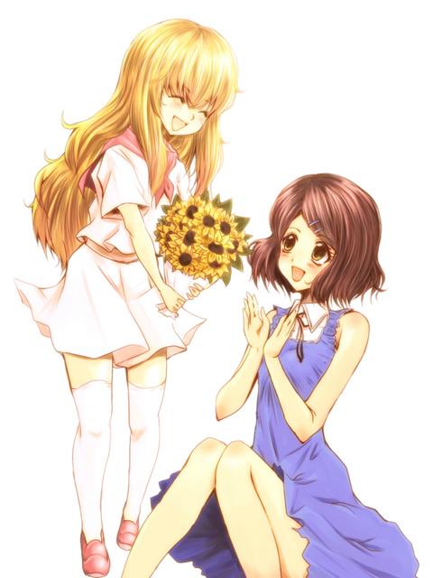 @Lecrin_ この辺りかな?お誕生日おめでとうございます。レイナから花束の贈呈(強制)があります。アイコンに似てるとあったので、そのまま描いてみました(^^