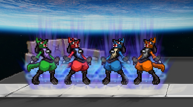 The Aura Pokémon steels itself for tough competition in Super Smash Flash 2! Just like in Super Smash Bros. it will grow stronger as it accumulates damage. Lucario is at its most powerful when its back is against the wall.