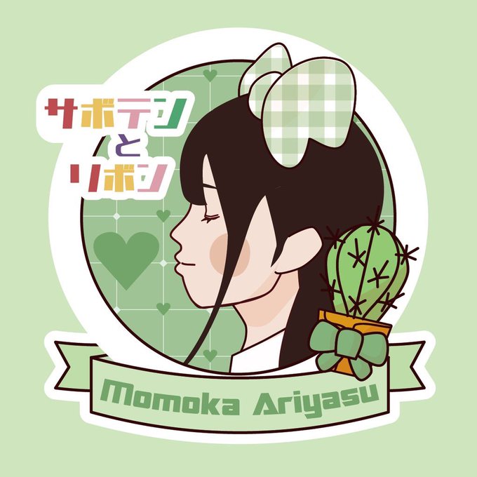 ちょっとタッチは違うけど、こんなシールはどうでしょう? サボテンとリボン✨ とりあえず有安杏果さんだけ描いてみました✨ #momoclo