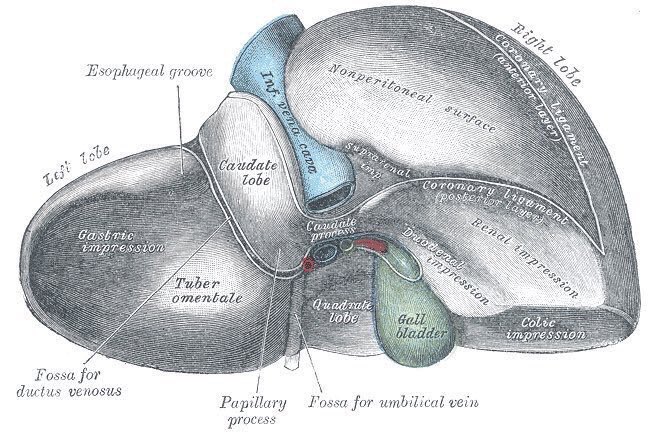 The posteroinferior aspect of the liver from 1918 edition of Gray's Anatomy by Henry Vandyke Carter #anatomy