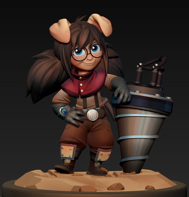 No one here really knows this, but I used to study 3D generalist stuff at school. I recently took the chance to make a ZBrush model of @IVoxxious's yordle oc, and I'm pretty happy with the result 😀
