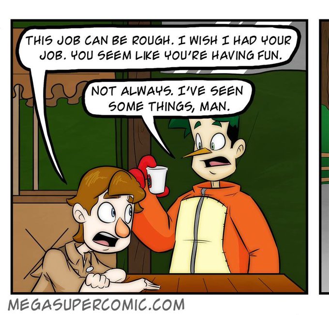 Tom learns more about a coworker in today's comic: https://t.co/UAOwJ9PBj2 #webcomic #comic #art #illustration #themepark